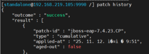 3.1 먼저 Jboss CLI에 접속하여 롤백하려는 패치 ID를 확인합니다.