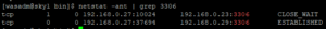 연결 확인. 23만 ESTABLISHED 되어있다.