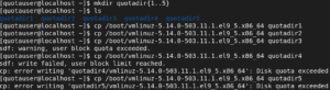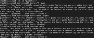 “[quotaoff|quotacheck|quotaon]: Your kernel probably supports ext4 quota feature but you are using external quota files. Please switch your filesystem to use ext4 quota feature as external quota files on ext4 are deprecated. You can enable the feature by unmounting the file system and running ‘tune2fs -O quota <device>’.”
