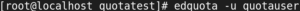 /etc/fstab 에 등록한 내용으로 /quotatest 를 재마운트합니다.