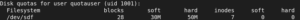 사용자가 어느 정도 사용량을 초과하면 경고 또는 사용을 제한할 것인지, 또는 어느 정도 inode 갯수를 초과하면 경고 또는 사용을 제한할 것인지 설정합니다.