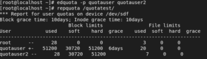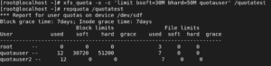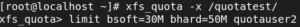 xfs_quota> limit bsoft=30M bhard=50M quotauser2