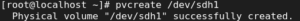# pvcreate /dev/sdh1