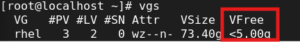 VG 확장 후 여유 공간을 확인합니다.