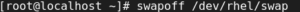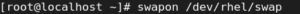 # swapon /dev/rhel/swap